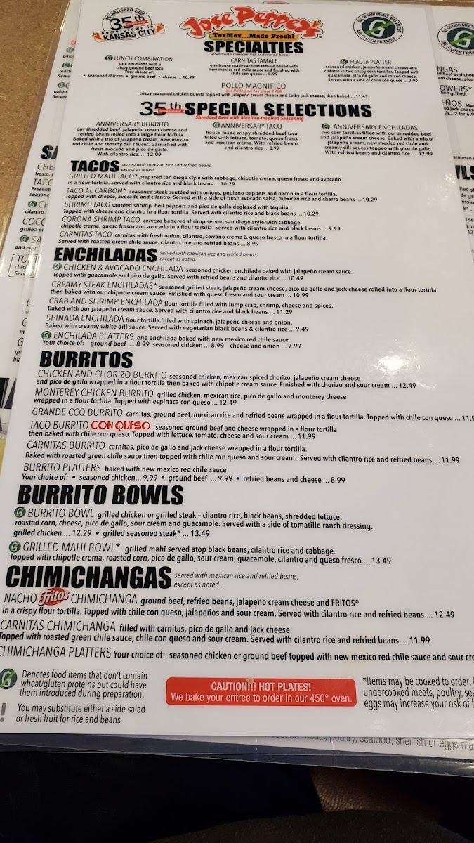 Welcome to Jose Pepper's - Olathe, a delightful haven for Tex-Mex lovers located at 13770 S Black Bob Rd, Olathe, KS. The menu is a vibrant celebration of flavors, offering classic dishes that keep customers coming back. Notable favorites include the savory Monterey Chicken Burrito and the flavorful Pollo Magnifico, both of which have garnered rave reviews.